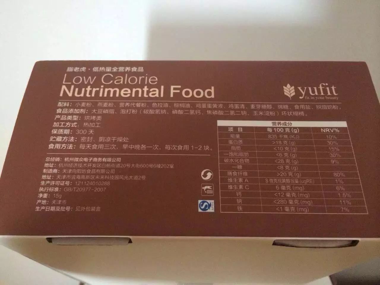 前几天,一位微信好友自称有一个非常好的项目需要营养师合作,名字叫“Yufit脂老虎”,有一套很好的营养食谱,想要瘦多少斤都可以搞定。大概看了一下食谱,除了一些正常吃的食物外,还有一个营养餐包。此时职业病就犯了,问对方营养餐包是什么成分?有没有配料表?随后对方发来了资料。
