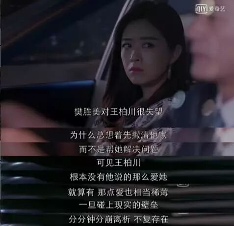 樊胜美该指责王柏川吗?爱情肯定意味着彼此分担痛苦和压力,但分担的程度、分量、在什么情况下分担,都有原则和底线。在樊家这样的无底黑洞里,王柏川又有多大能力去承受考验呢。