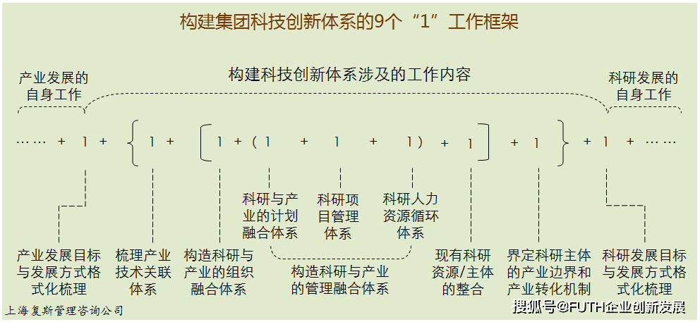 集团科技创新体系构造的工作框架和内容要点——五个接合与9个“1”体系【复斯品科创说管理】