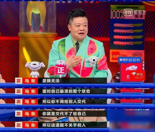 我很赞同马东的话:十年前那次崩溃完之后,我就没有再崩溃,不是因为今天不值得崩,也不是我不想崩,是我无法面对自己崩溃的那个状态,所以你不用给别人交代,你就是交代不了自己。