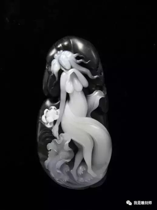 中国传统玉雕,大多偏向于写意,现代玉雕在传统的写意基础上,加上了写实的一笔。玉温润灵动,女人柔情含蓄,两者结合,将无以言尽的美彻底展现在众人眼前。