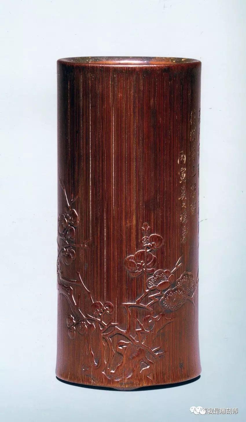 [图六]清 吴之璠款 竹雕翦梅图笔筒