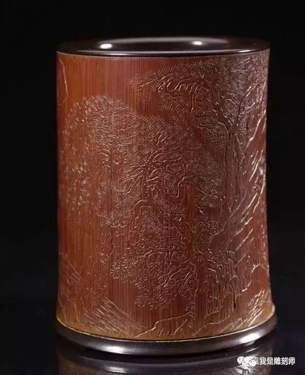 [图四]清早期 顾珏 竹雕山水人物图笔筒