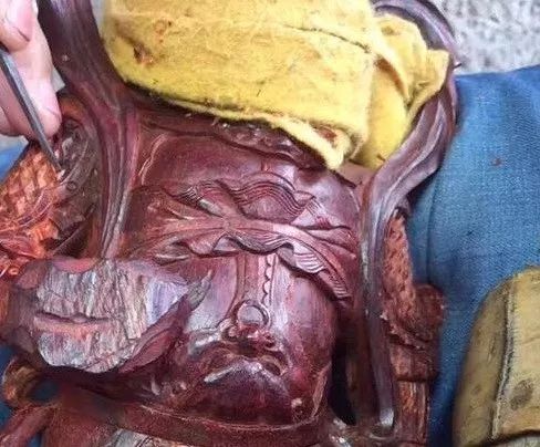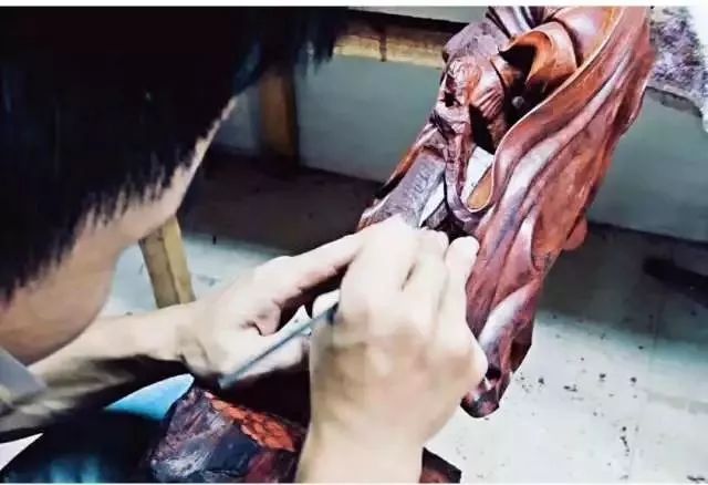 清刀工艺的雕件,在毛胚雕刻好之后进行精修光时,全手工使用刀具,将整件毛胚一刀刀的修光完成。而不是采用通常的方式,用砂纸或者其他磨具去打磨光滑。