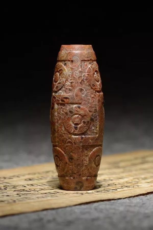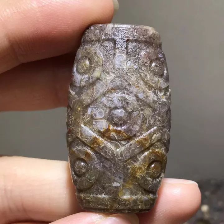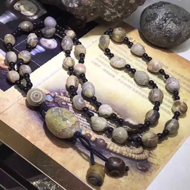 在这个期间频繁和剧烈的地质活动中,那些螺类生物在低温高压的条件下,就被埋入地底,经过长时间的封存之后,形成法螺天珠的原生矿石,然后等地壳上升的时候,就被藏民发现并使用了。