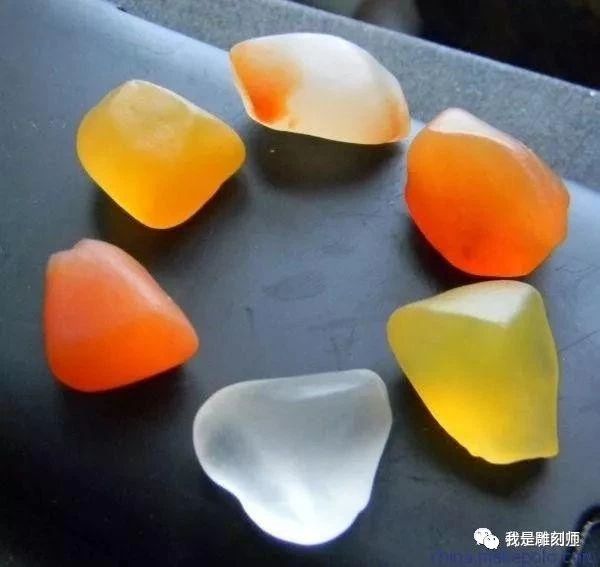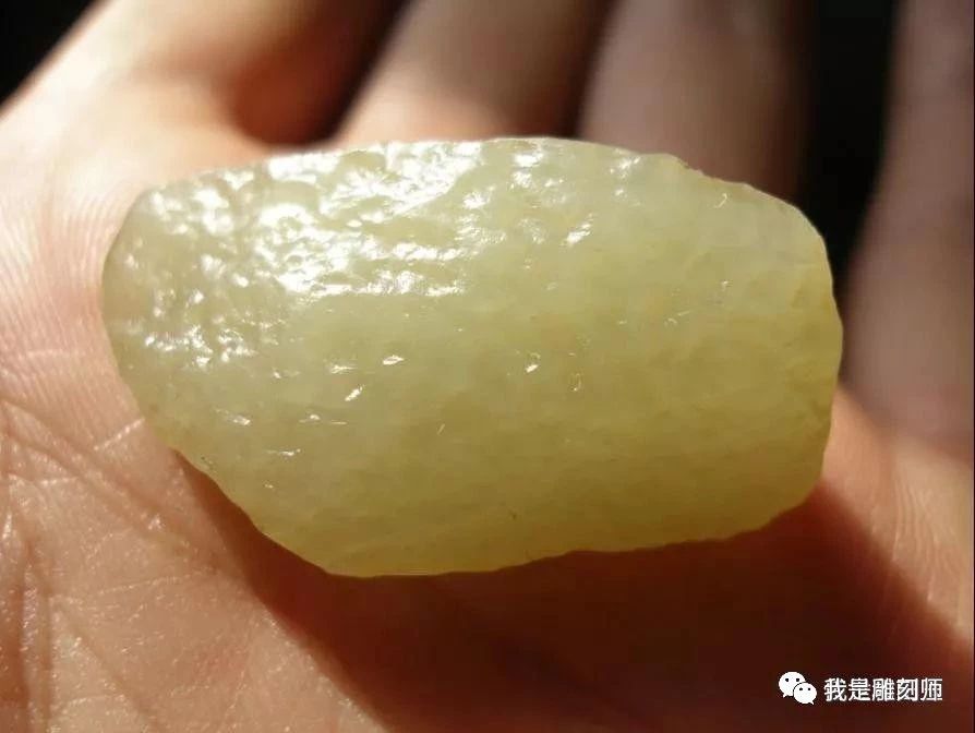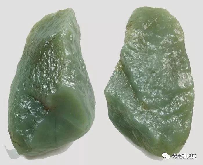 为了不被欺骗,我们应该学会分辨戈壁玉和戈壁料。一般来说,戈壁玉色泽比较艳,形状不规则,表面比较光滑,并且你可以看到它的表面存在着砂石冲击而留下的线状纹路,常见为片状。而戈壁料则有凹凸平滑的小坑,油脂光滑,多为块状分布。
