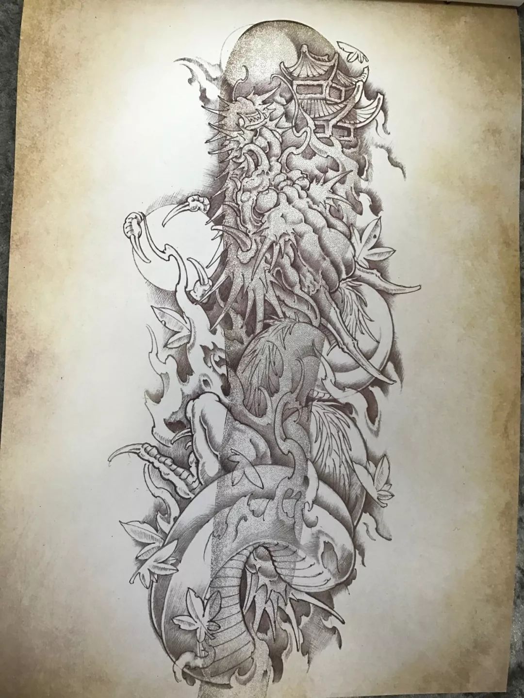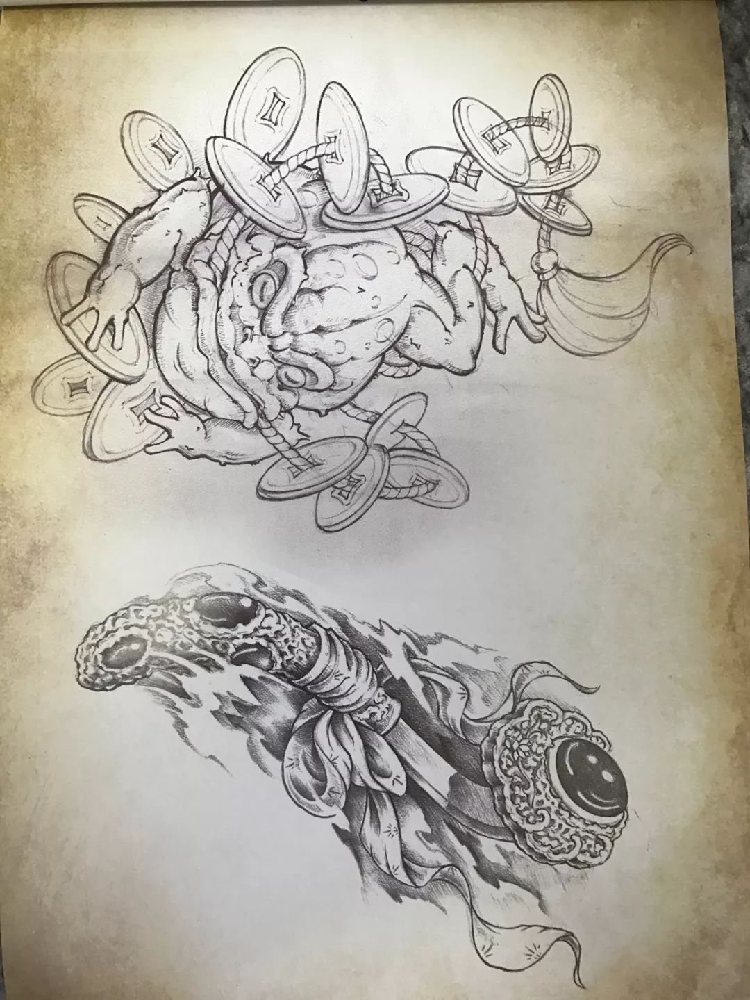 我是雕刻师,纹身雕刻素材素描手稿盛腾