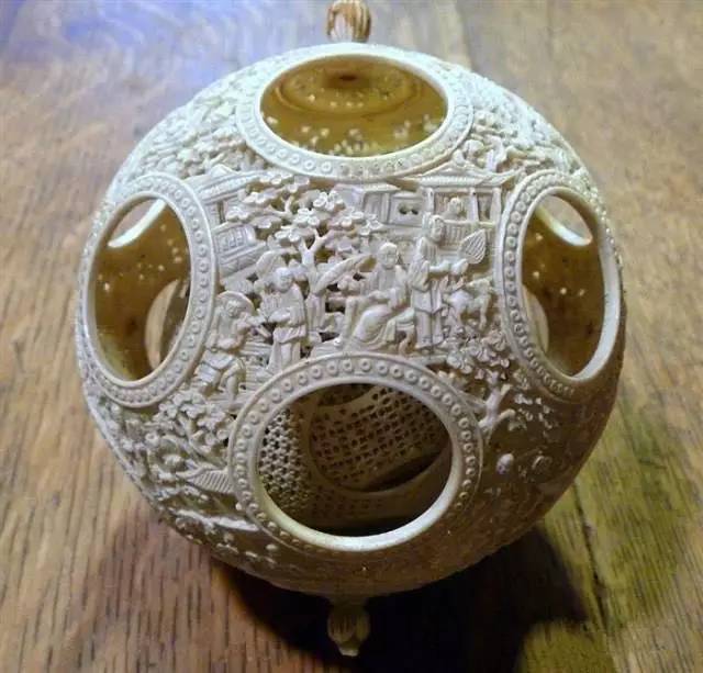 鬼工球之所以叫鬼工球,是说这种用象牙雕刻的多层球体堪称鬼斧神工。鬼工球的历史非常悠久,清代的时候就已经发展到13层了。鬼工球有很多层,层层相套、每一层都可以独立转动,但是这么复杂的结构,却是由一块完整的象牙雕刻出来的。每个见到鬼工球的人都不禁要问,里面的那些层是怎么雕刻的。