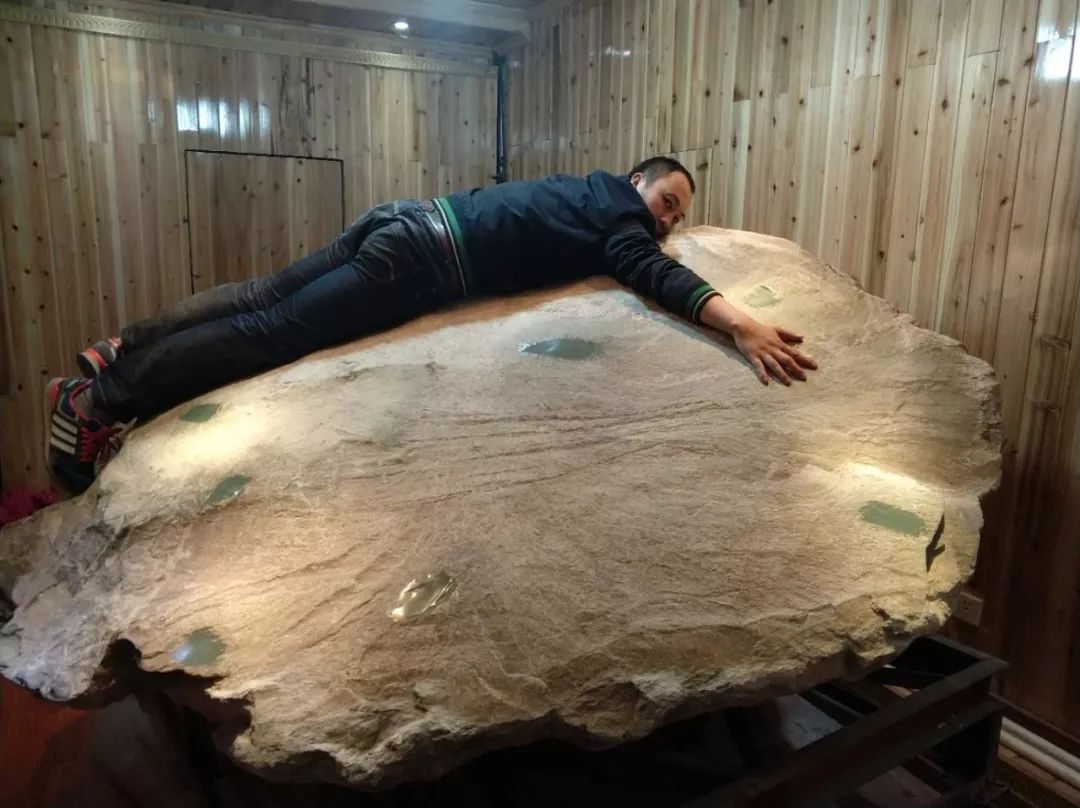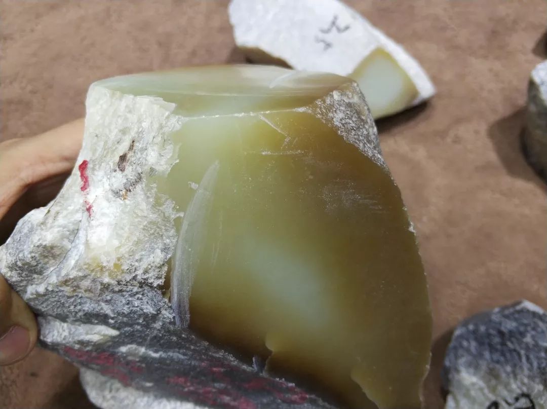 值得一提的是塔特勒克苏矿,曾经出产过很多国宝级的玉料,比如前几年挖出来的那块著名且末玉王,它可是有史以来记载的最大的一块和田玉玉料。(你没看错,阿宝趴在上面的这块就是玉王本尊了)