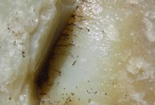 且末料普遍会带有糖色,当然好的料子白色部分是纯白的,只带有一层糖皮。