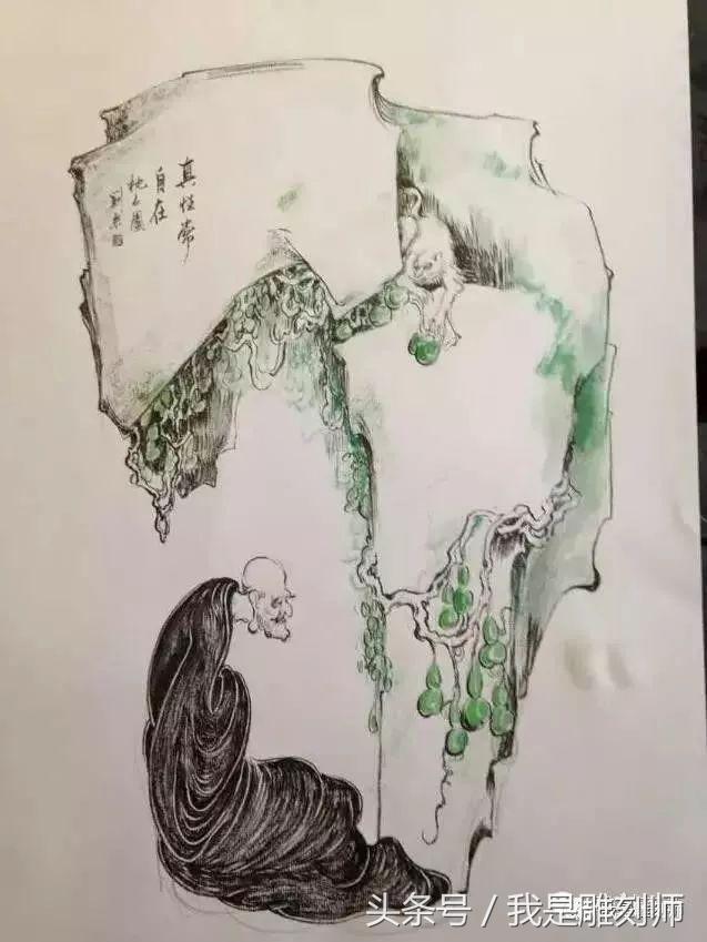 我是雕刻师刘东,枕石艺术—玉石设计手稿与心得分享