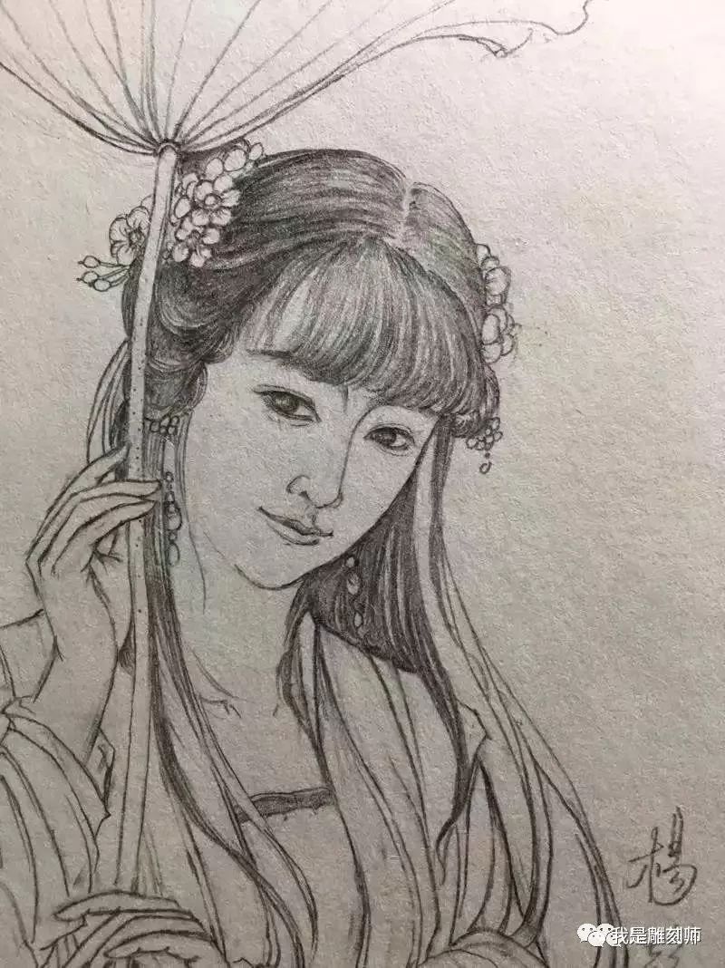 我是雕刻师,纯手工雕刻素描纹身人物画稿素材