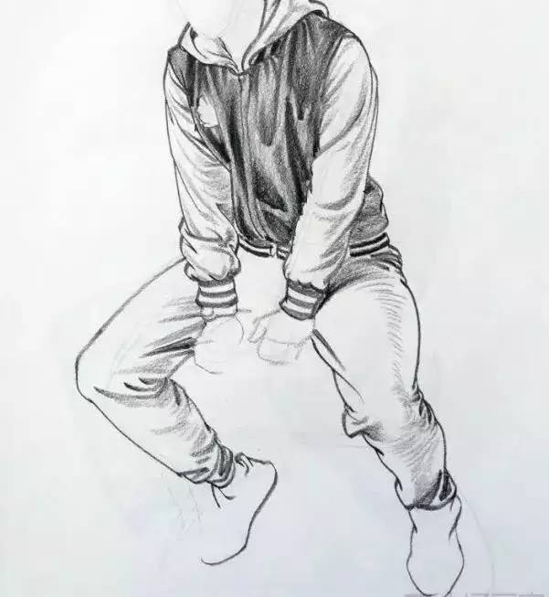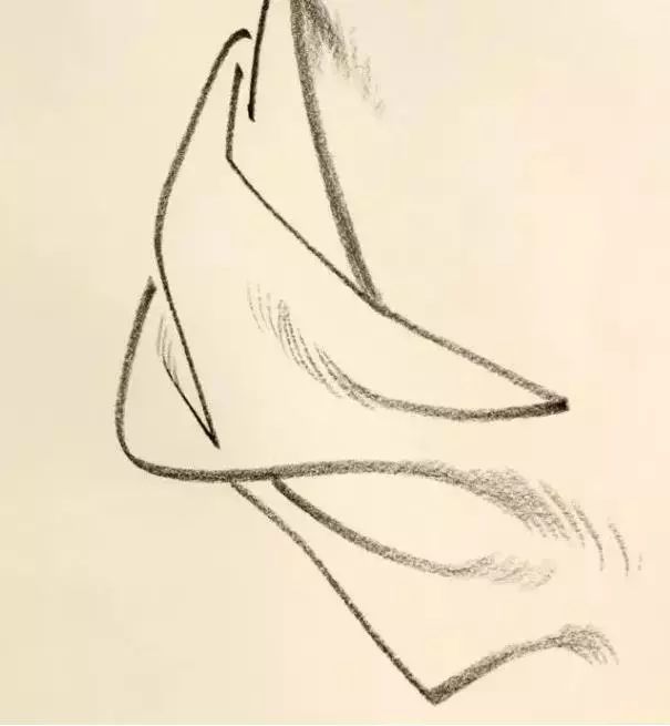 经过仔细观察可以看清每条线的开始和结束,也就能交代出线的来龙去脉了。注意线的虚实变化,有些布褶是从线过渡到面有的是从面过渡到线,有的开始处清晰明暗对比强烈缓慢的过渡直到消失成平面,这也就是“实起虚收”。有的是从平面慢慢开始隆起直到形成清晰的布折也就是“虚起实收”。