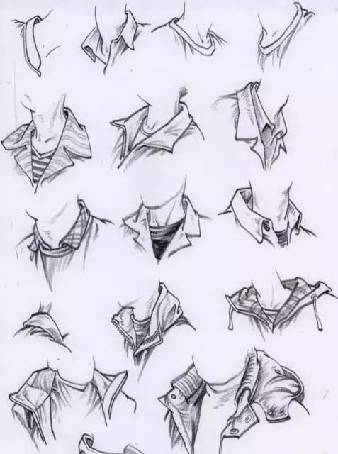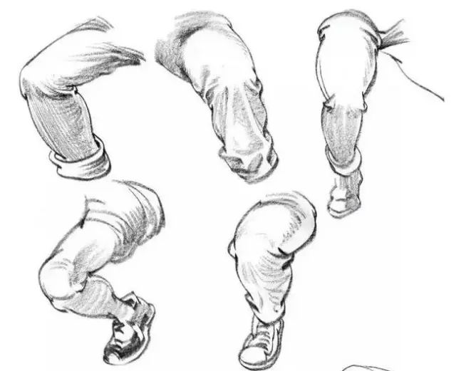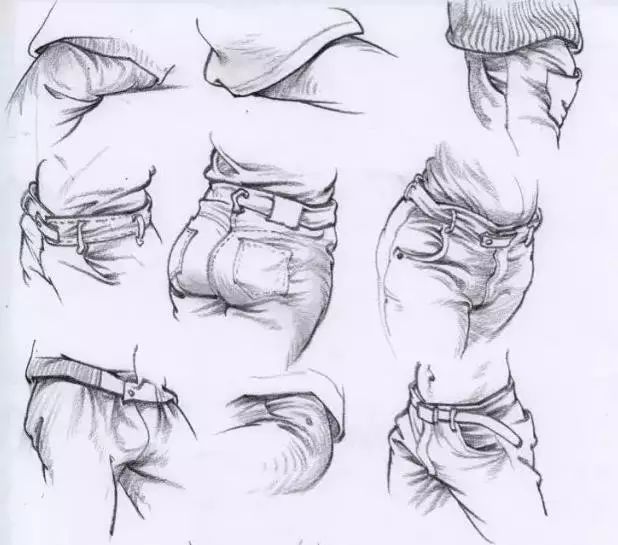 如果不观察我们都概念的认为领口、袖口、裤脚都是圆的。其实不是,为什么呢?因为我们的颈部、手腕、脚腕都不是纯圆柱体,领口要受脖子肩膀的影响手腕是扁圆的,脚腕也是扁圆的,甚至是方的所以画此处时要真实反映衣物所包裹下的物体特征。