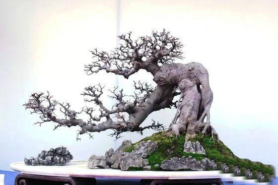 鹿角枝和蟹爪枝是岭南盆景的特有造型,那么两者之间有怎样的区别?简单来说,出枝向上为鹿角枝,出枝向下为蟹爪枝。鹿角枝造型刚劲雄伟而蟹爪枝清雅秀气,枝条起伏多变,此技法特别适合创作文人树作品。