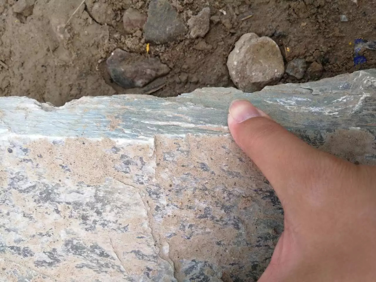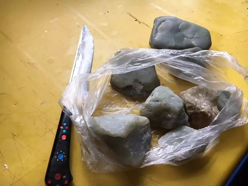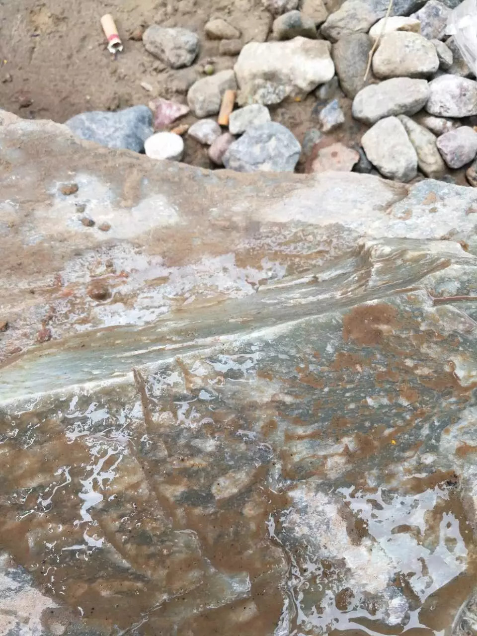 这就是我们在路边捡到的,这些料子是山料,而且绺裂等瑕疵太多,不适合用来雕刻东西,所以“捡”了也没有用。丢掉走人。。。