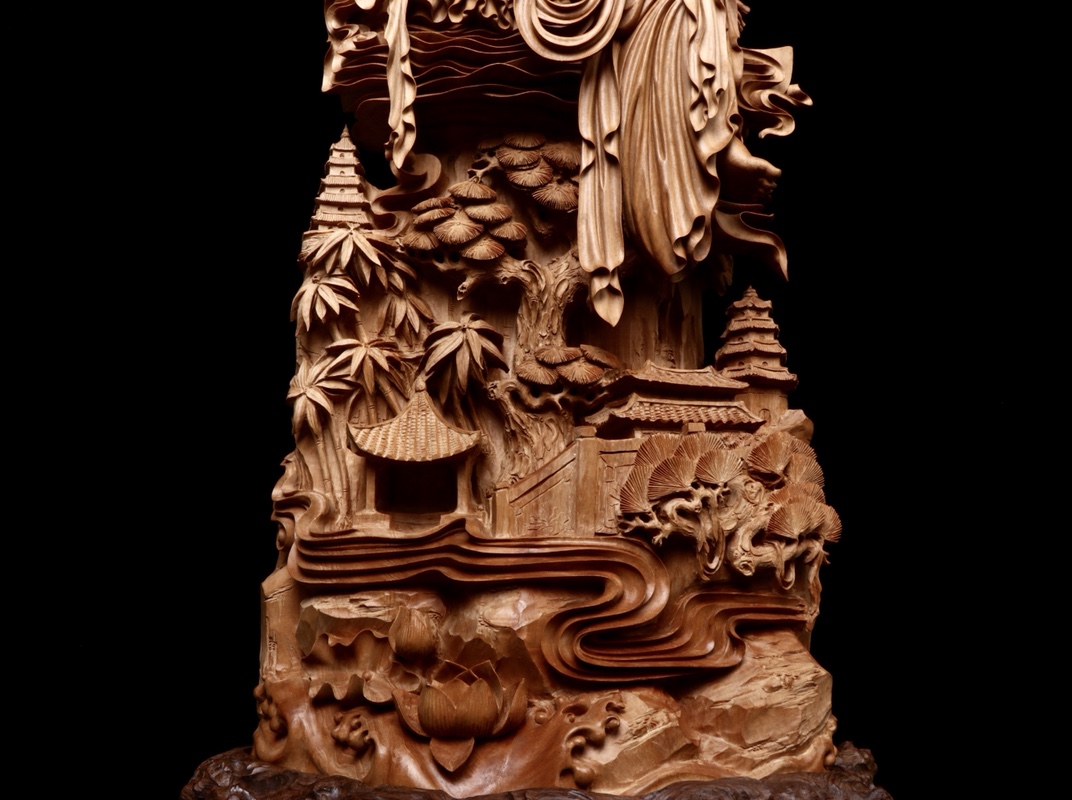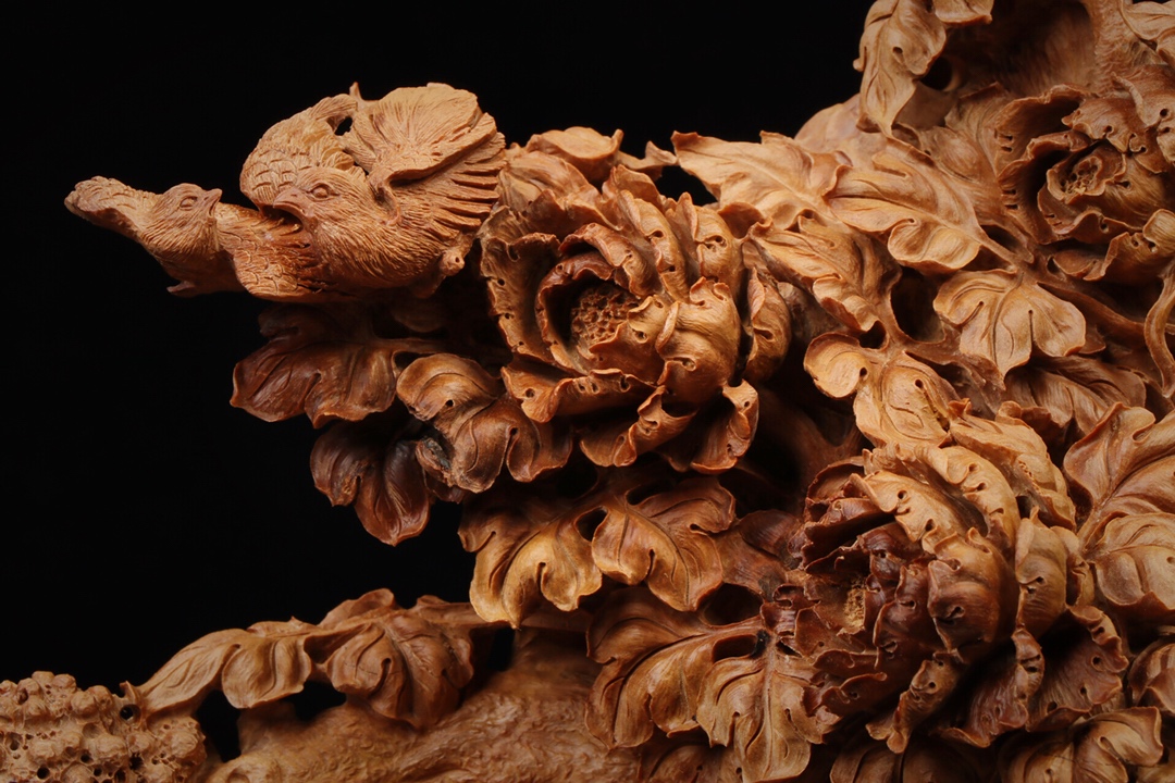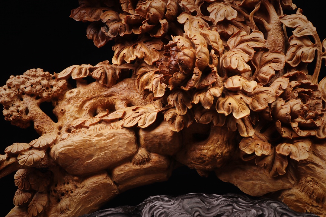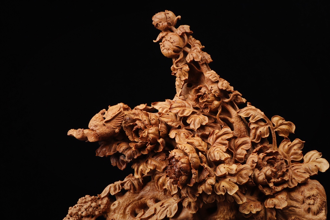 颜色深的老山檀,雕刻成木雕工艺品之后,不能够进行深度抛光,这样颜色会失真。