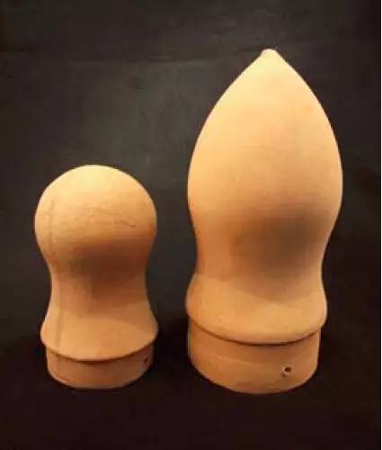 范制葫芦的阳模:范制葫芦施雕于阳纹木胎,木胎又称“撞子”。如雕刻成木阴模,即可将嫩匏纳入。过去雕刻成的阳纹木胎需先用陶泥翻制成阴模,然后放入窑中烧制成陶范模具,也就是我们常说的瓦模。