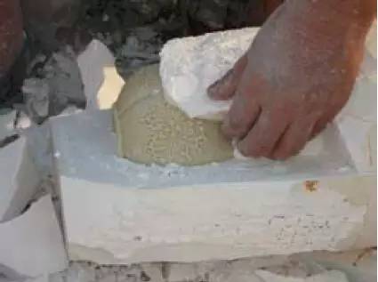 翻制石膏模具用橡胶阳模翻制出大批量两瓣的石膏阴模,用石膏阴模可直接应用于范制匏器。