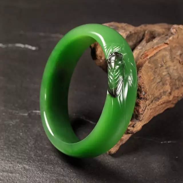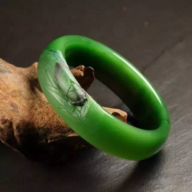 碧玉巧雕手镯—翠竹蝉韵