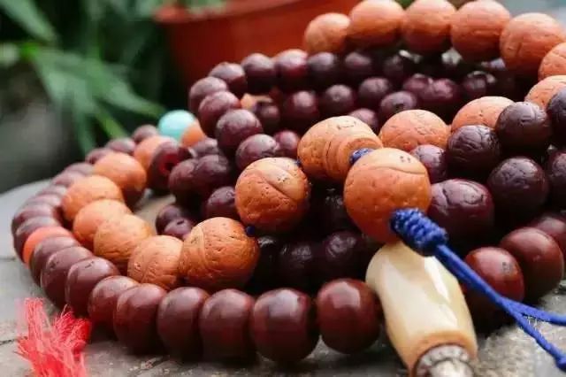 老念珠108颗不会像现在机器打磨也不会特别的精挑细选,所以珠子有大小形状不均匀的情况是意料之中的。反之,如果一串老佛珠大小形状完全一致反倒需要小心了。