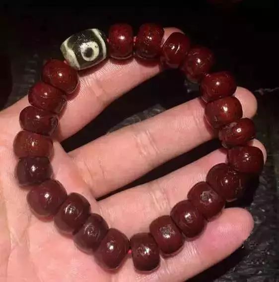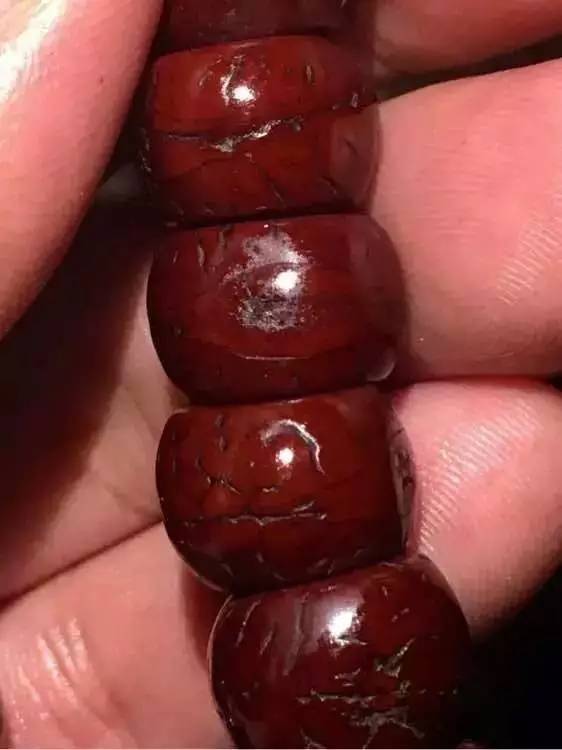 具有百年以上身份的老菩提子念珠基本上都已经“熟”透了,或多或少会产生挂瓷的效果。一般菩提子珠粒的直径较小,不易直观观察到挂瓷的状态,那么,利用放大镜或者拍成照片放大以后,就会发现珠粒所带有的一些微通透的效果,就像用油炸过一样,颜色暗红透亮,这就是“挂瓷”。