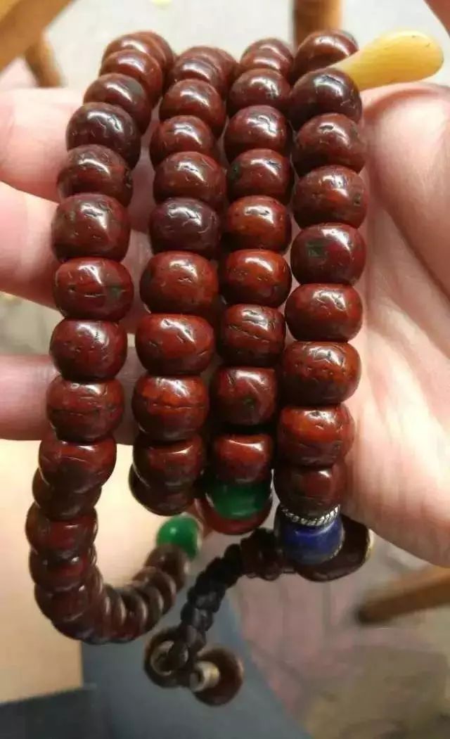 那些用油浸过的菩提子,手感发黏,通透感觉有了,可是那种暗红色不到位,而且颜色基本不一致。