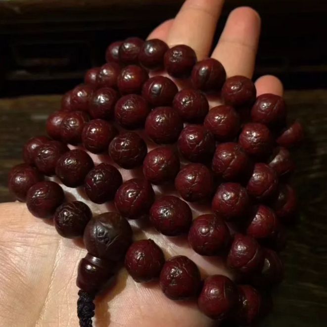 在百年以前,菩提子念珠并不属于收藏品,所以没有人会像现在的串友那样讲究菩提子的颜色、直径尺寸以及把玩规律,这就决定了老菩提子在整体的统一性上的特征,那就是: