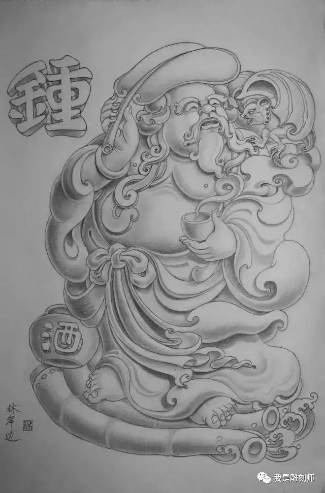京城顽主,玉雕大师八仙素描手稿欣赏