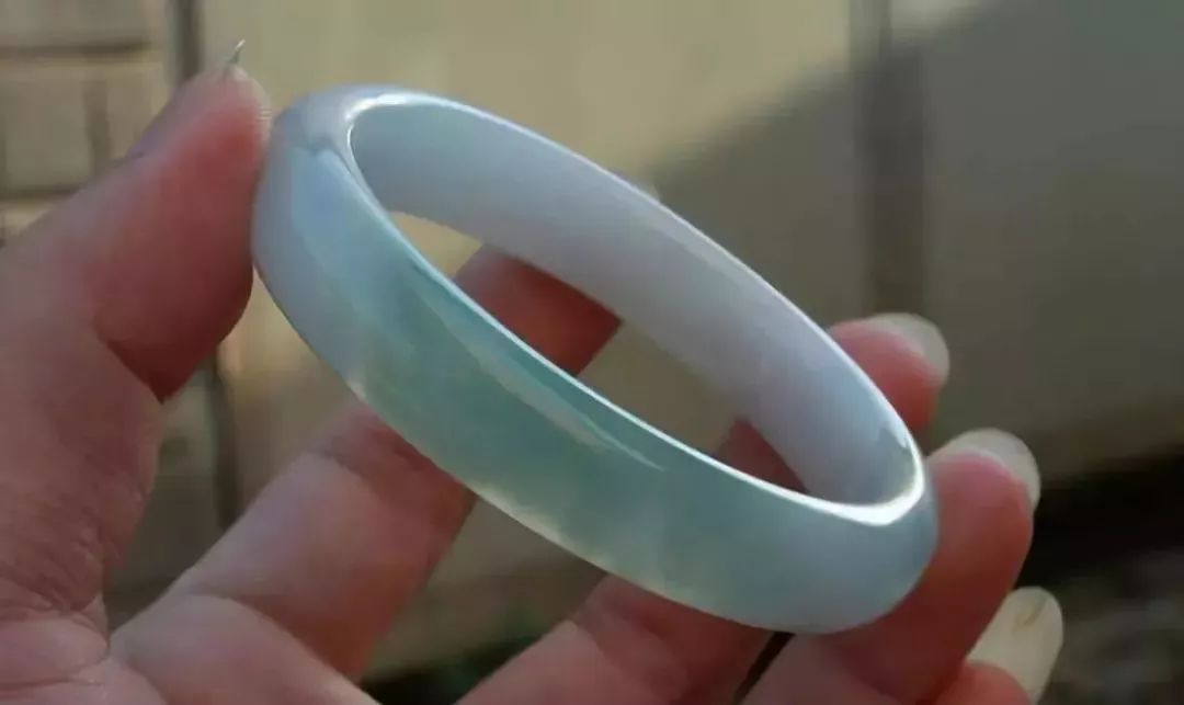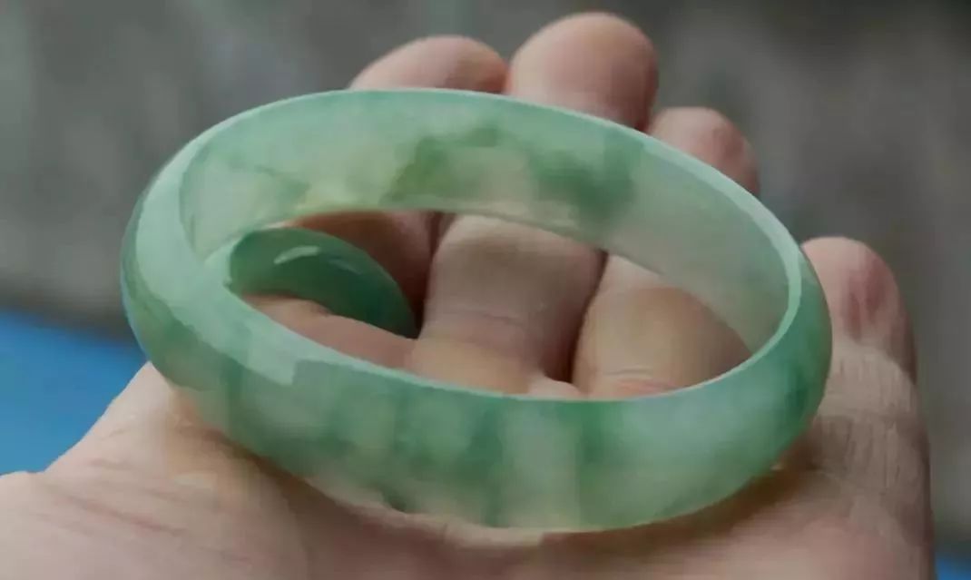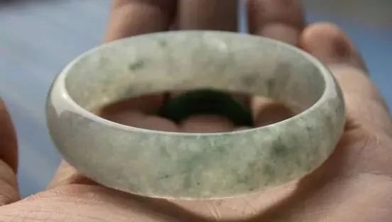 种嫩的冰糯手镯,玉质粗,结构疏松,颗粒感明显,棉和杂质比较多。