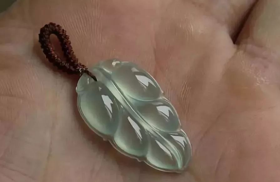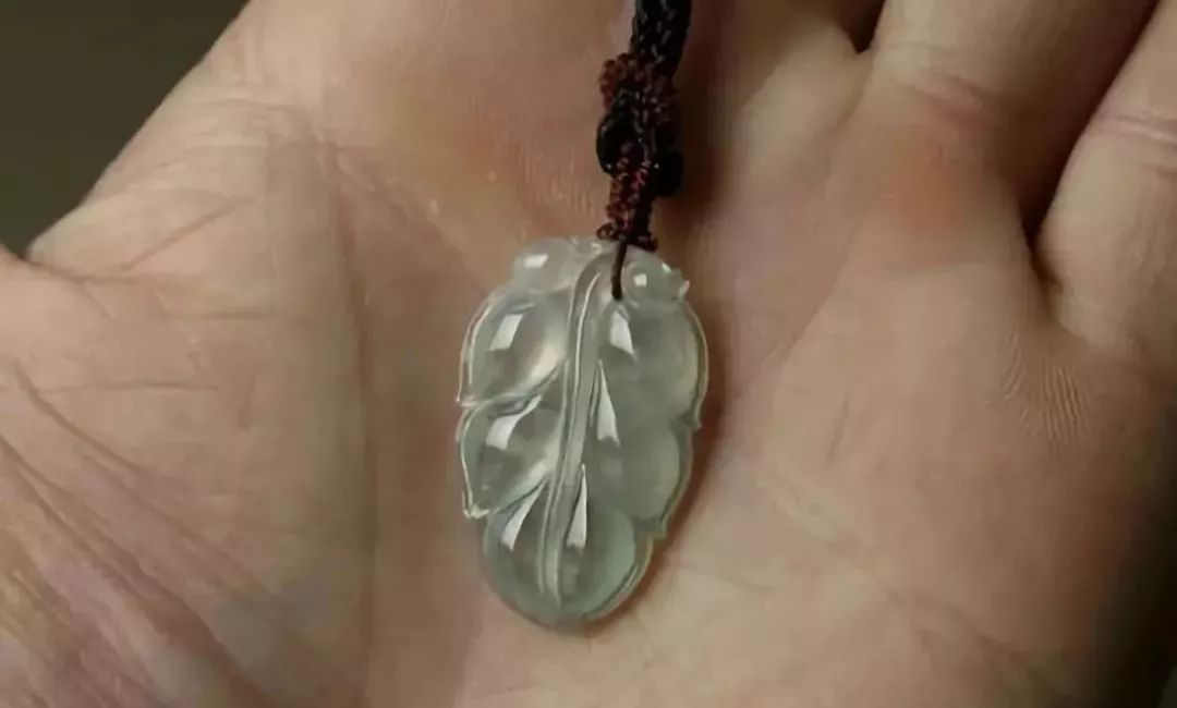 下面这个叶子一出来,前面几个叶子就显得黯然失色了。这个是高冰种的晴水叶子,种很老,玉质细腻纯净,通透起强莹光,光泽度极好。品质很高的翡翠。