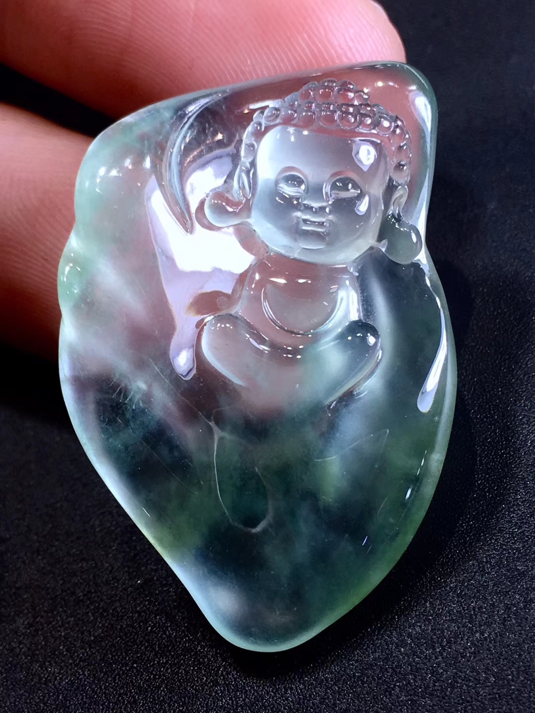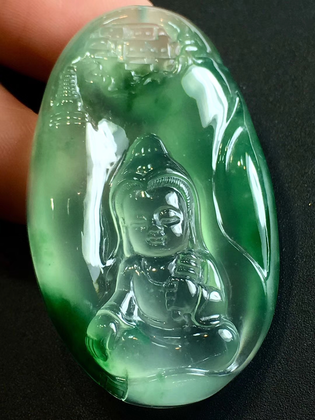 这个冰种佛比较容易唬人,看着光亮亮的,多冰透啊,可透光一看,种还是嫩了!