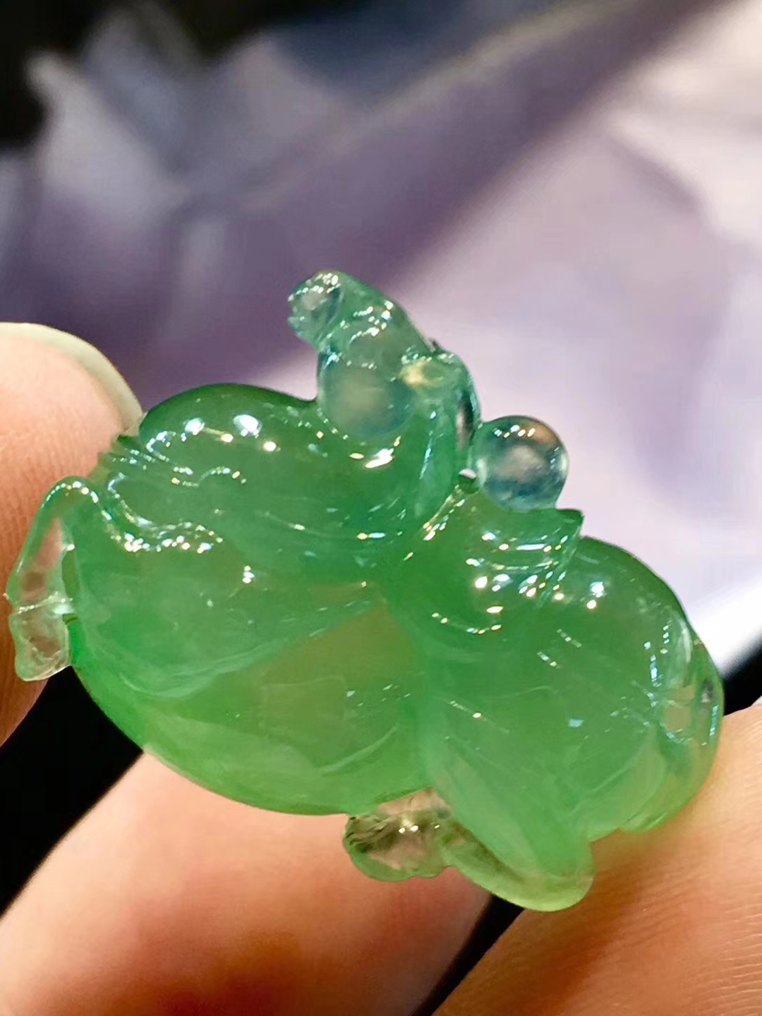 冰种的龙珠,还有点起光了,不过透光看就知道种嫩了。