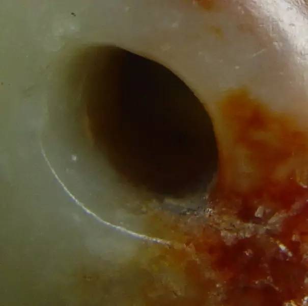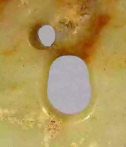 在宏观把握的基础上,透过玉器局部孔的识别,可以进一步确定真伪。
