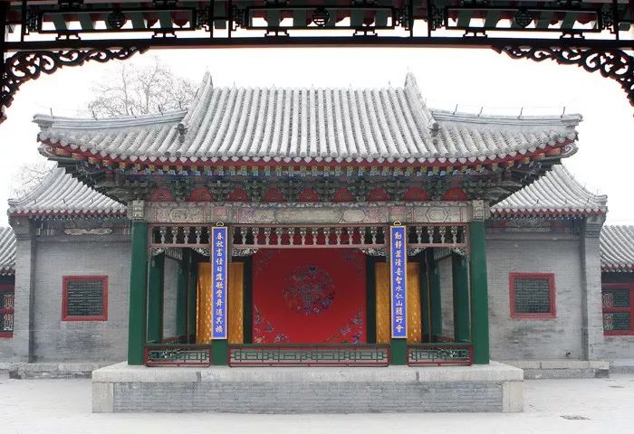 西路——戏台、嘉荫堂、文溯阁和仰熙斋等。于1782年建成,是清朝皇帝“东巡”盛京(沈阳)时,读书看戏和存放《四库全书》的场所。