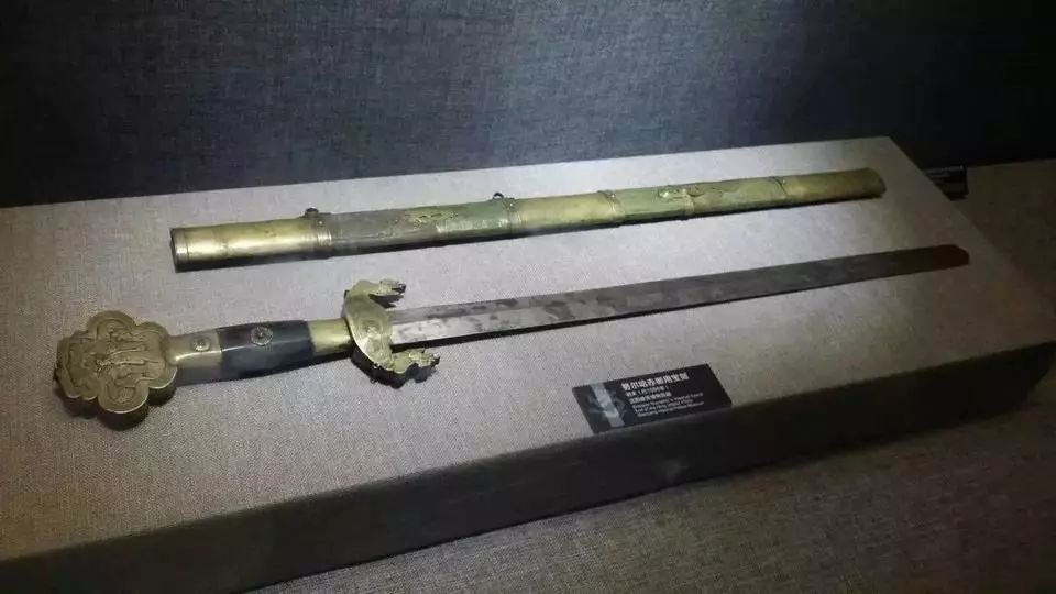 这把宝剑全长80.5厘米,剑宽3.1厘米、厚0.7厘米,是明王朝册封努尔哈赤为“龙虎将军”时的馈赠物,后成为清太祖努尔哈赤的御用宝剑,也是其出土的唯一遗物,后为国家一级文物。