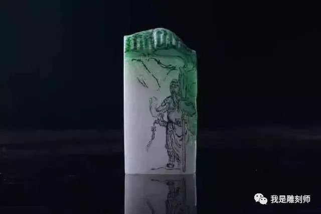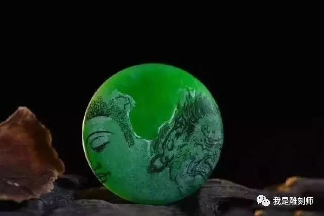 料子玉质很细腻,选用了禅意翡翠,牌子的右上部分设计的是观音菩萨,有一些山水,还有悟道者。