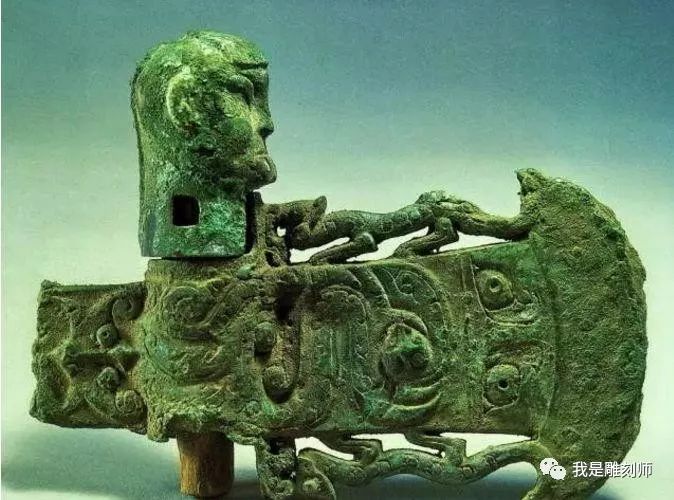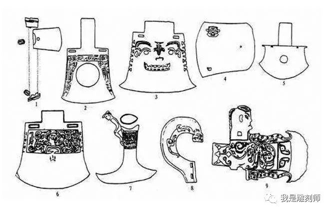 斧钺在古代作为一种权杖,甚至还有着通神的意义。在成都金沙遗址出土的一柄斧钺,它的两面都雕琢有精致的纹饰,顶部以兽面纹为中心,兽面纹有双角、卷耳、双眼构成。