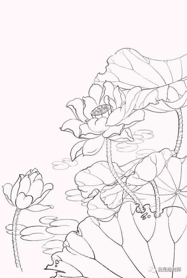 工笔画教程:荷花白描线稿和上色详细步骤图解,简单易学,收藏