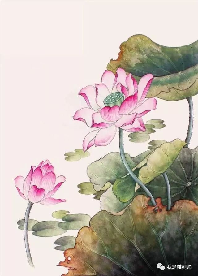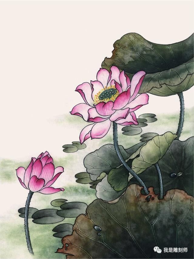 荷花圣洁高雅、体态丰腴且种类较多。在绘制时要对整体与局部同时把握,既要画出荷花的婀娜多姿,又要做到细节上的细致。
