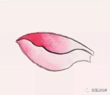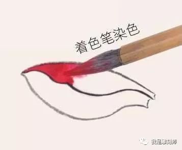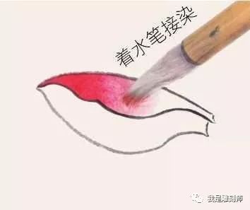 用着色笔蘸曙红,从瓣尖处起笔绘制,之后立即用着水笔进行晕染;要晕染均匀,即可达到荷花花瓣的颜色渐变效果。