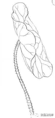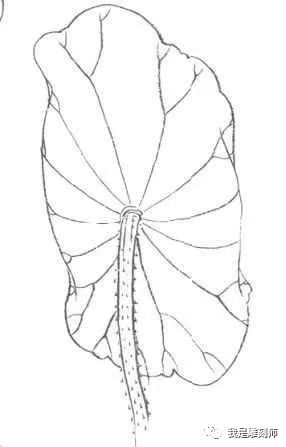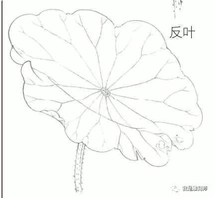 荷叶的形态可大致分为残叶、卷叶、圆叶以及反叶。勾勒时要注意叶子边缘和叶脉线条的粗细、虚实变化。