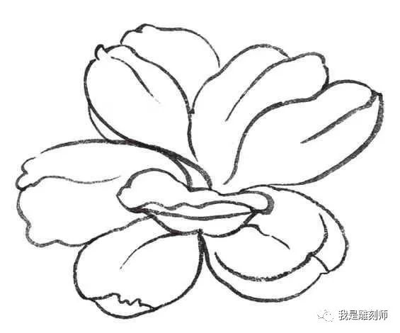 可先绘制上方的花瓣,要重点表现背向花瓣的透视关系,完善花瓣,使其相互掩映叠放,形状的大小有丰富变化。