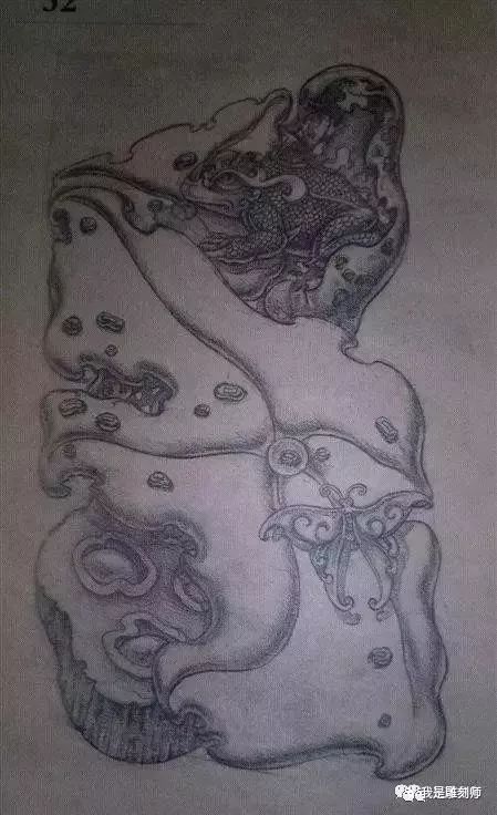 我是雕刻师!大师画的玉雕设计图纸手稿