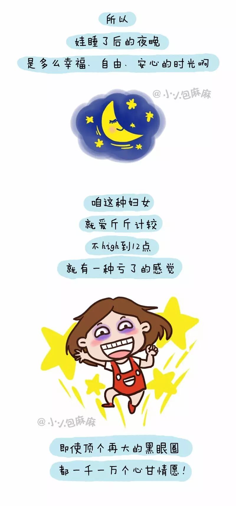 而如今,孩子睡了之后,我们才挤出这一点难得的独处时光,于是就有“世界终于是我的了!”的心情,相信每个当妈妈的定会秒懂!别再说我们磨蹭磨蹭到很晚了,因为难得,所以倍加珍惜!