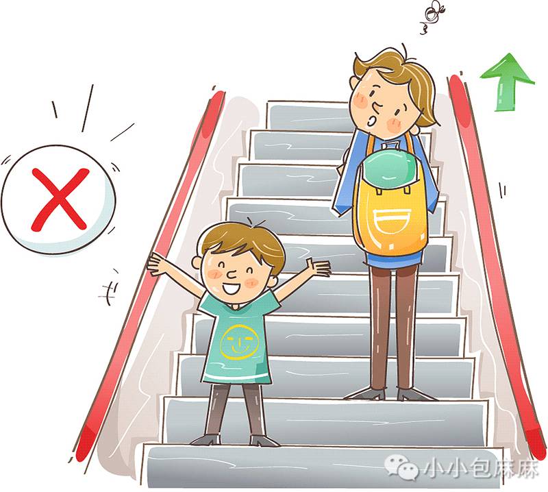 当孩子能独立行走的时候,上下扶梯时,一定要牵着孩子的手,并且看好时机提醒孩子迈腿,不要踩黄线!不要踩黄线!不要踩黄线!