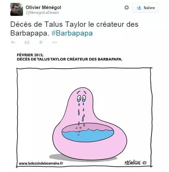 而就在今天,国内媒体曝出,《巴巴爸爸》的创作者、法国著名儿童漫画家德鲁斯·泰勒(Talus Taylor),已于2月19日去世,享年82岁。