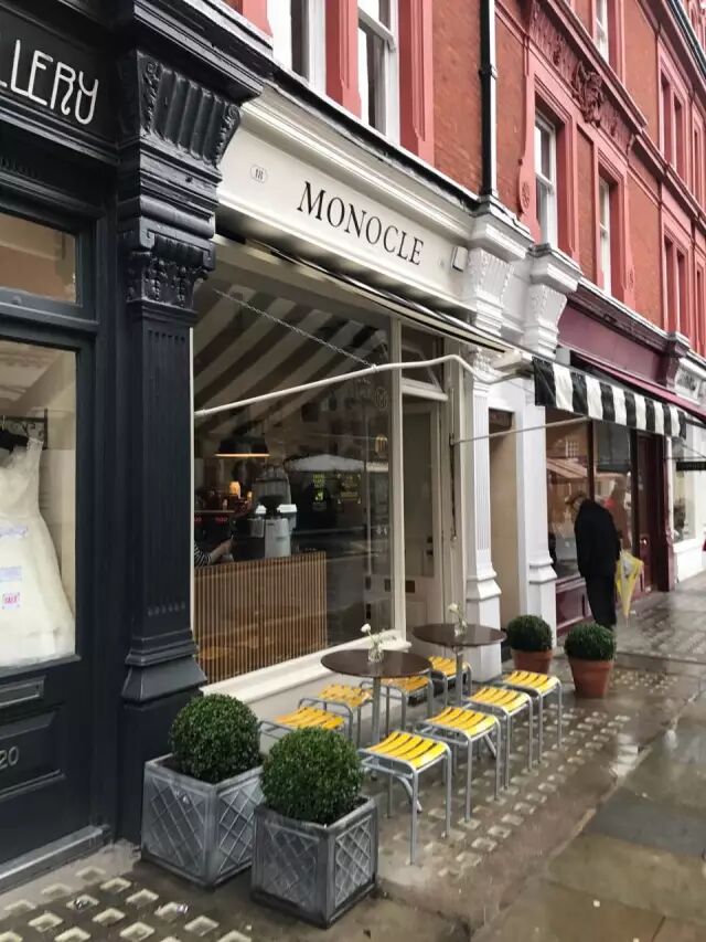 第一个面谈对象是一个在当地学设计的姑娘,她带来厚厚的简历,希望成为我的实习生。我们约在 Baker 街附近的 Monocle 咖啡馆见面。(作为该品牌的忠实拥护者,当我听说没位置的时候,也执意请她在此等候。)咖啡馆里陈列着《MONOCLE》杂志和相关出版物,出入的绅士们俨然是从杂志里走出来的,朴素又体面。