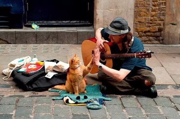 我在飞机上看了 A Street Cat Named Bob ,从同名、真实事件畅销书改编,James 是伦敦入不敷出的街头艺人,Bob 是一只流浪猫。有猫在的时候, James 往往能收到很多钱,因而更像是 James 被 Bob 收养了。