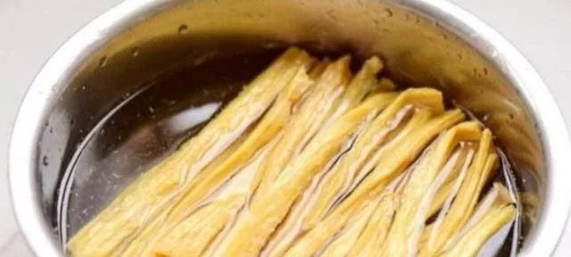 浸泡腐竹时,不要只浸泡在清水中!厨师会教您一个技巧,先将其煎炸,然后用沸水将其浸泡1分钟。餐厅使用这种方法浸泡腐竹,这也适合家庭使用。